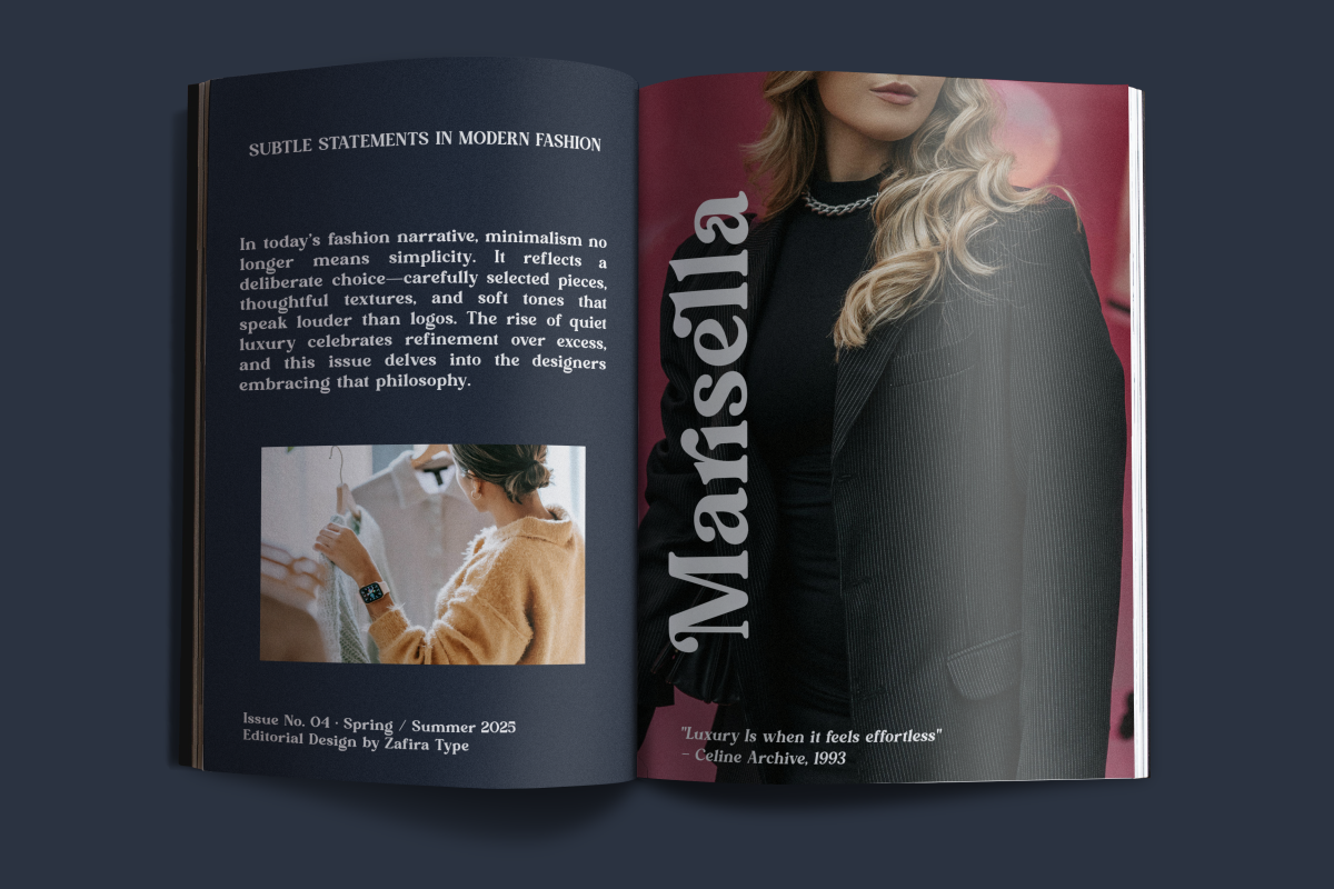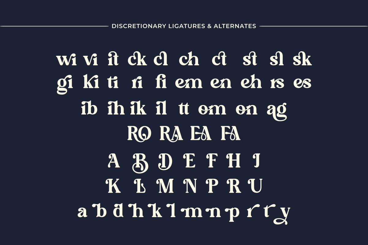 Elmaris is a decorative serif typeface with bold contrast and artistic letterforms. Designed with striking curves and expressive ligatures, Elmaris brings a strong personality to headlines, logos, and editorial layouts. It features a set of alternates and stylistic ligatures that make each word feel crafted and intentional. Whether for fashion branding, luxury packaging, or creative typographic posters, Elmaris adds a unique voice to any design.