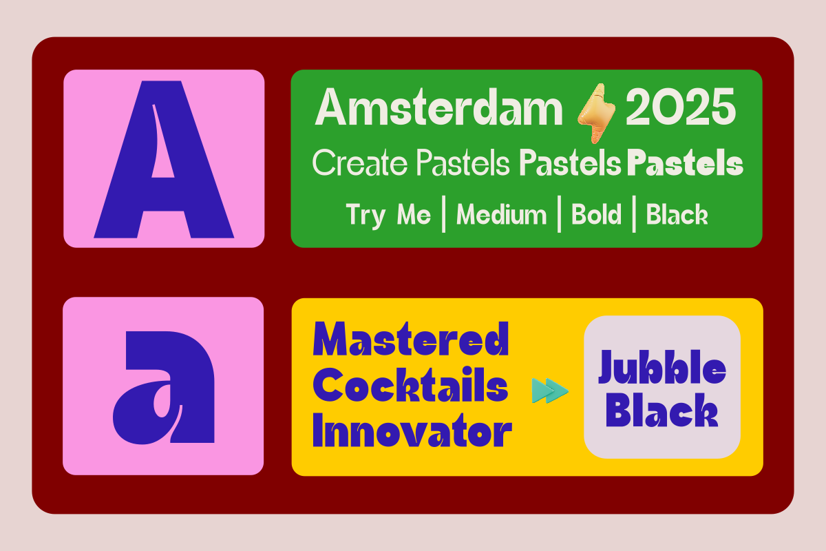 Discover Jubble, a complete modern sans serif family designed with smooth curves and clean geometry. Its rounded shapes bring a friendly, approachable personality, while its precise structure keeps every weight looking sharp, contemporary, and highly versatile.